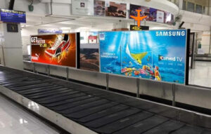 High-visibility branding where travellers wait for luggage, ensuring maximum exposure and brand recall.